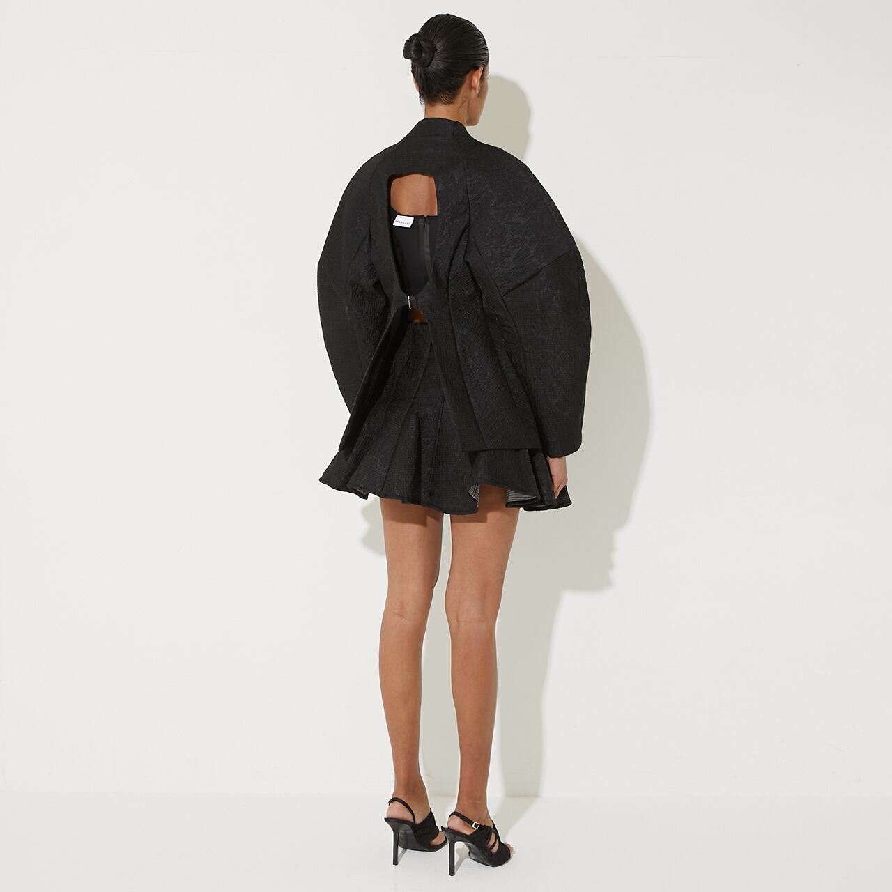 袖は立体的なパターン構成で膨らみを表現