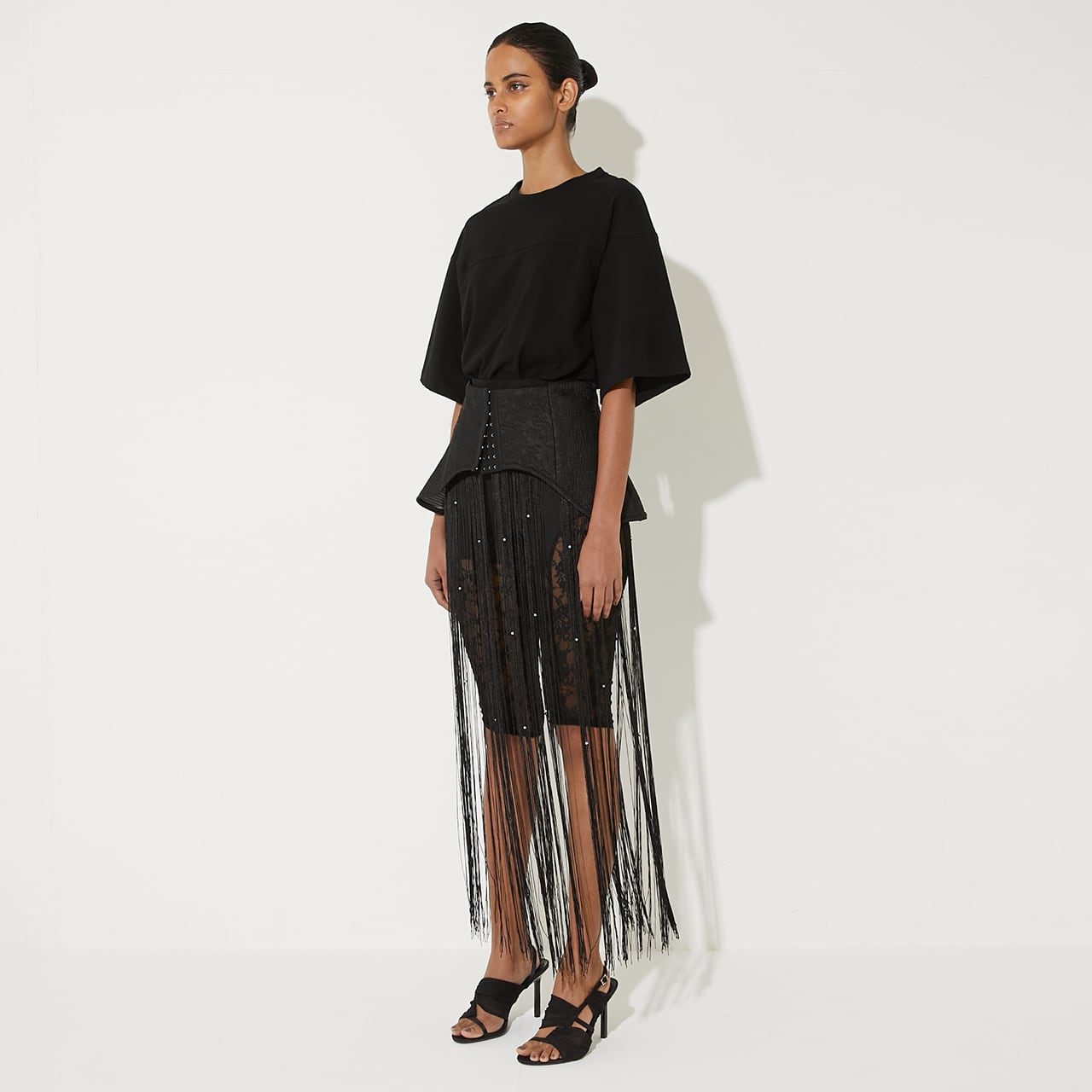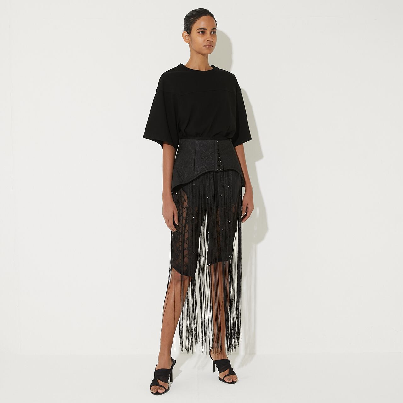 ボトムをレイヤードして揺れる感じが儚く印象的
