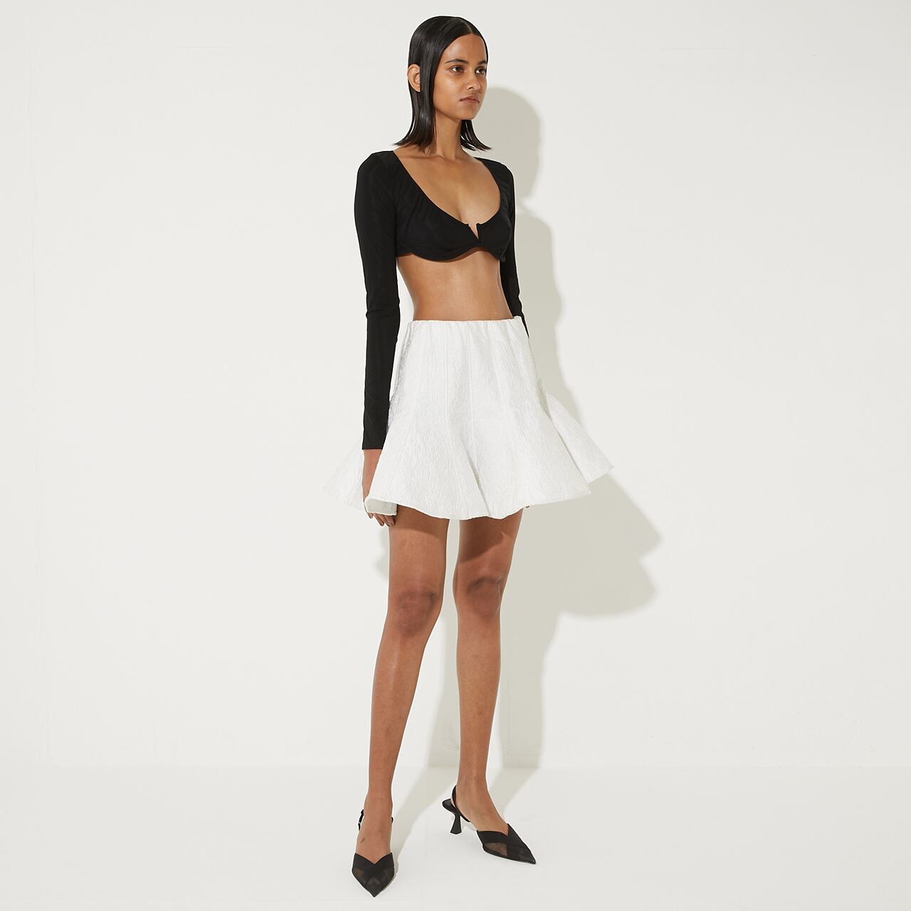 アンティークのランプシェードをイメージしたユニークなフォルムスカート。