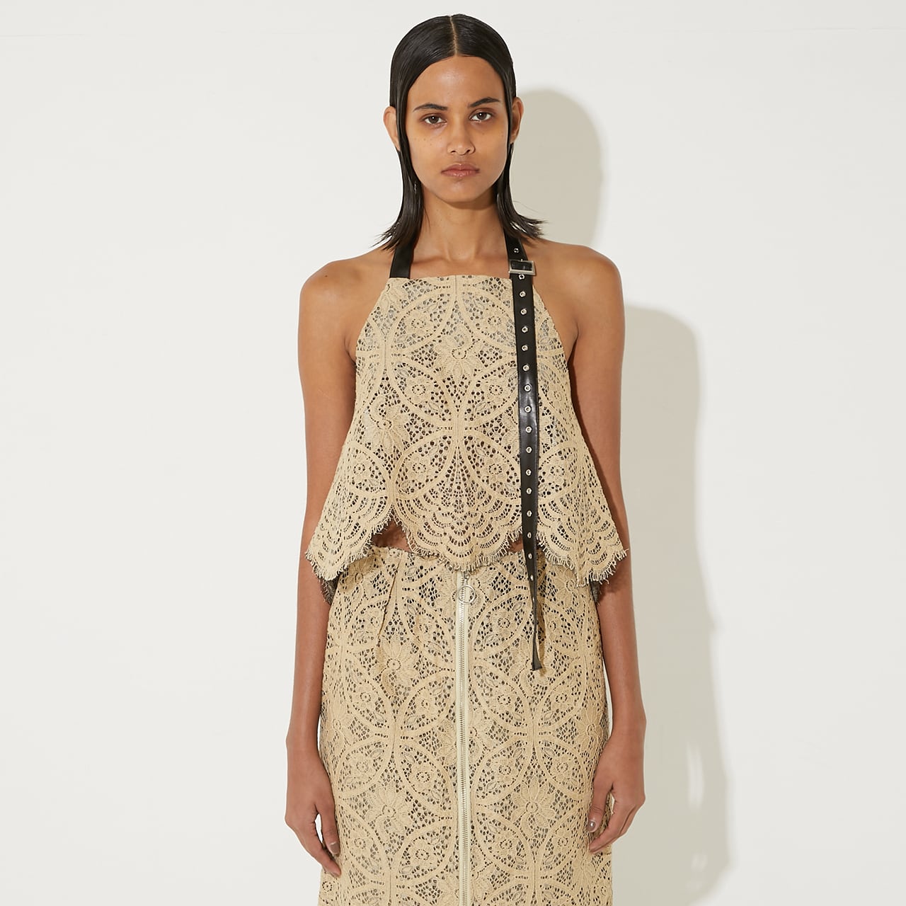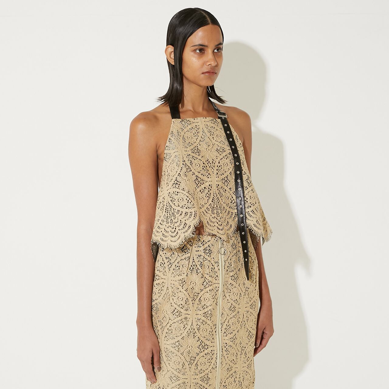 ホルターネックのエコレザーベルトには