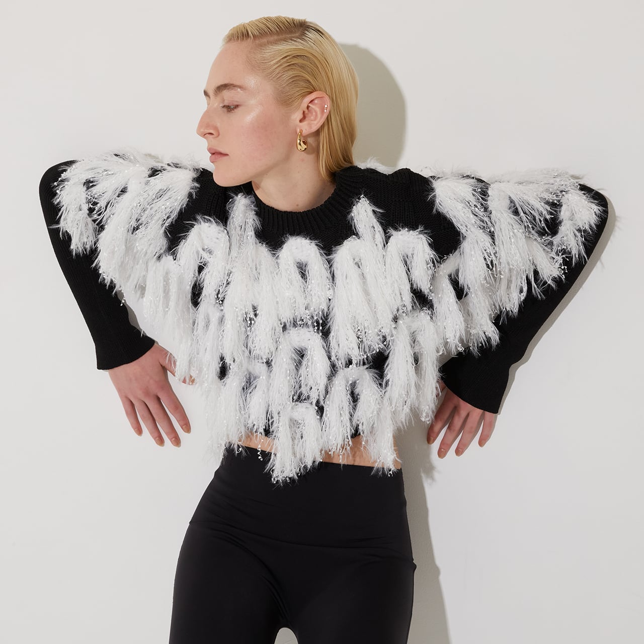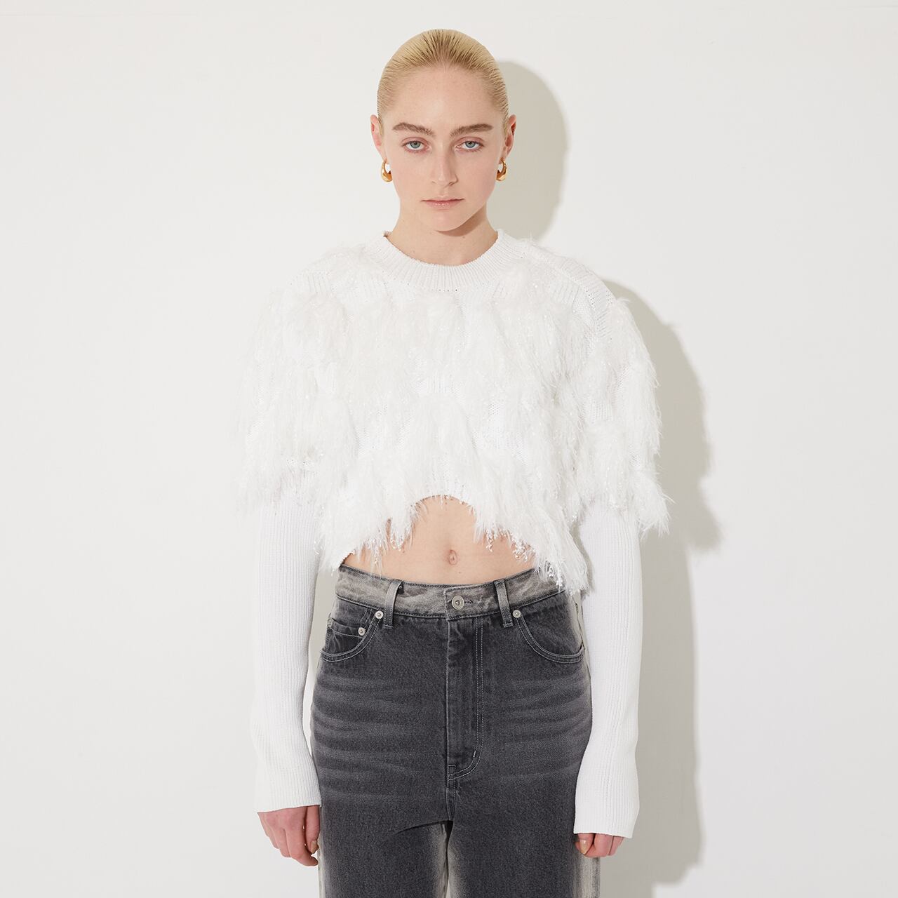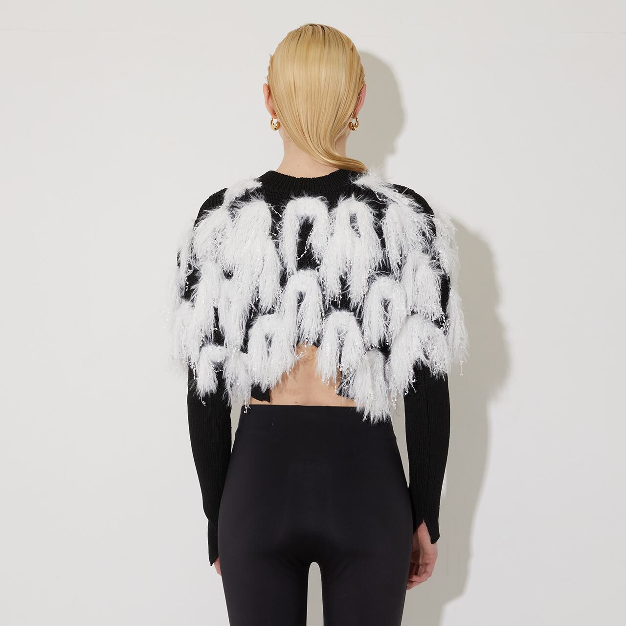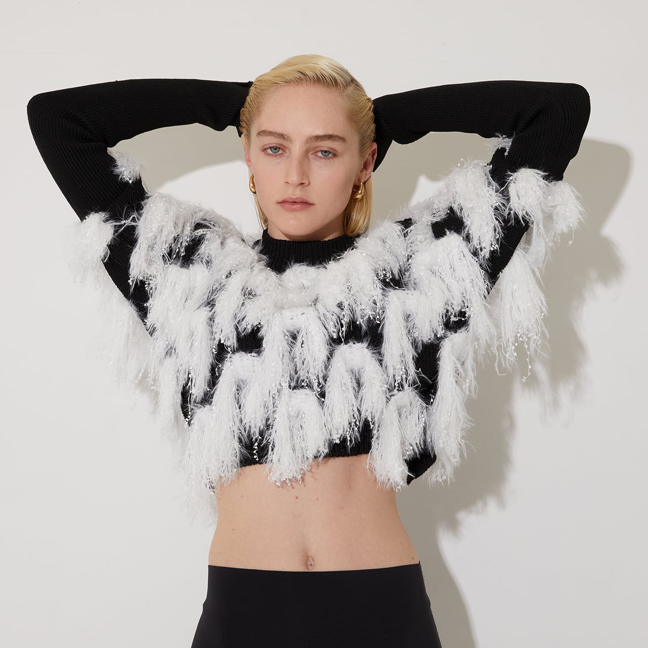ふわふわとしたボリュームがインパクトのあるニ ット素材です。