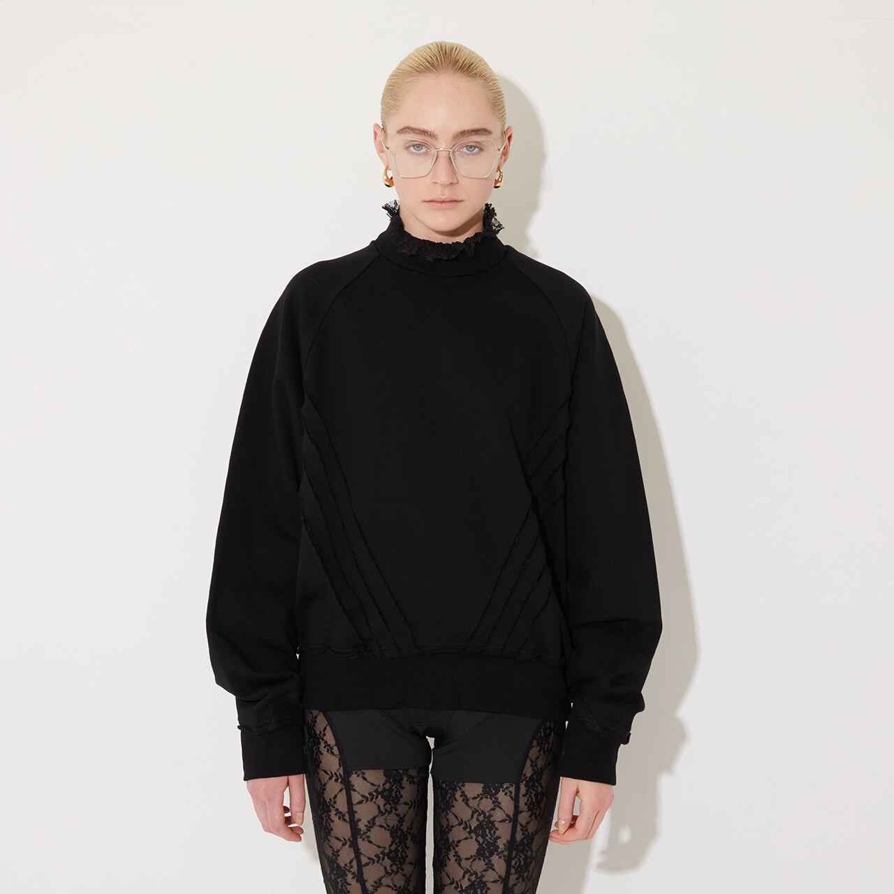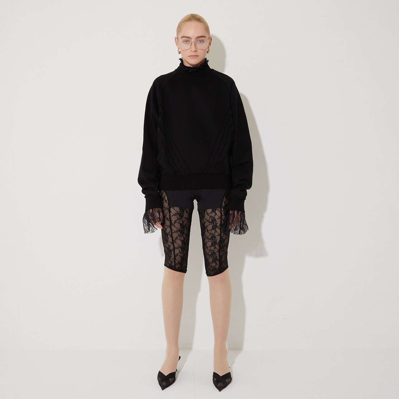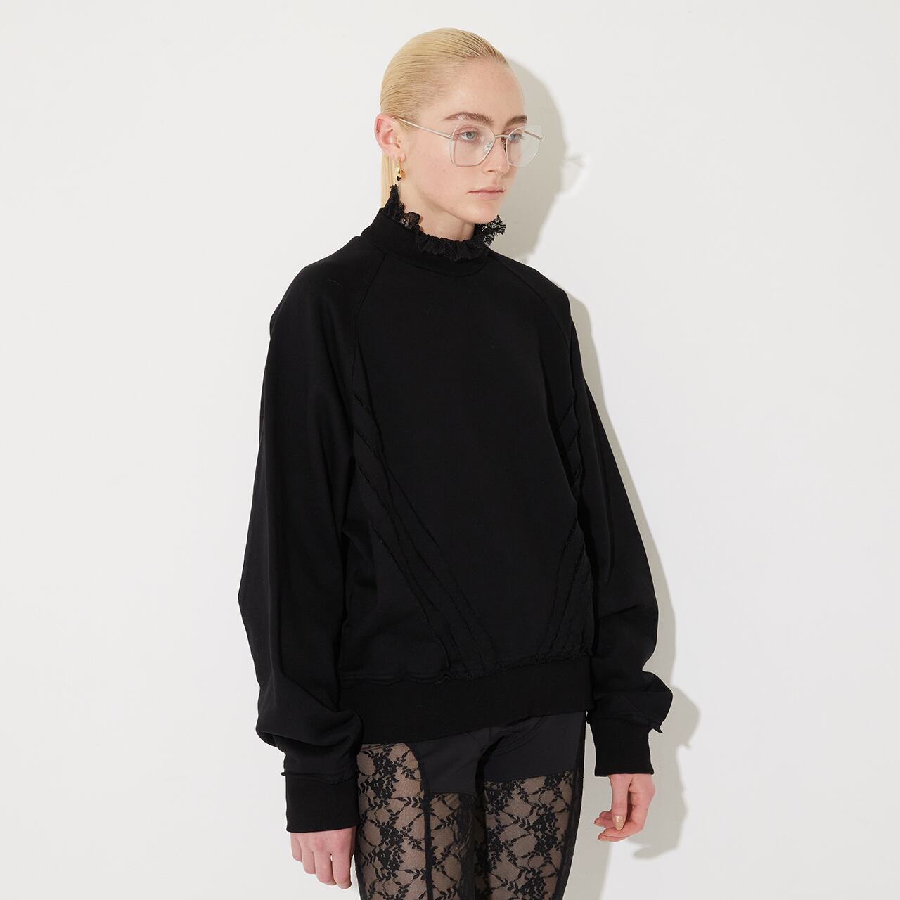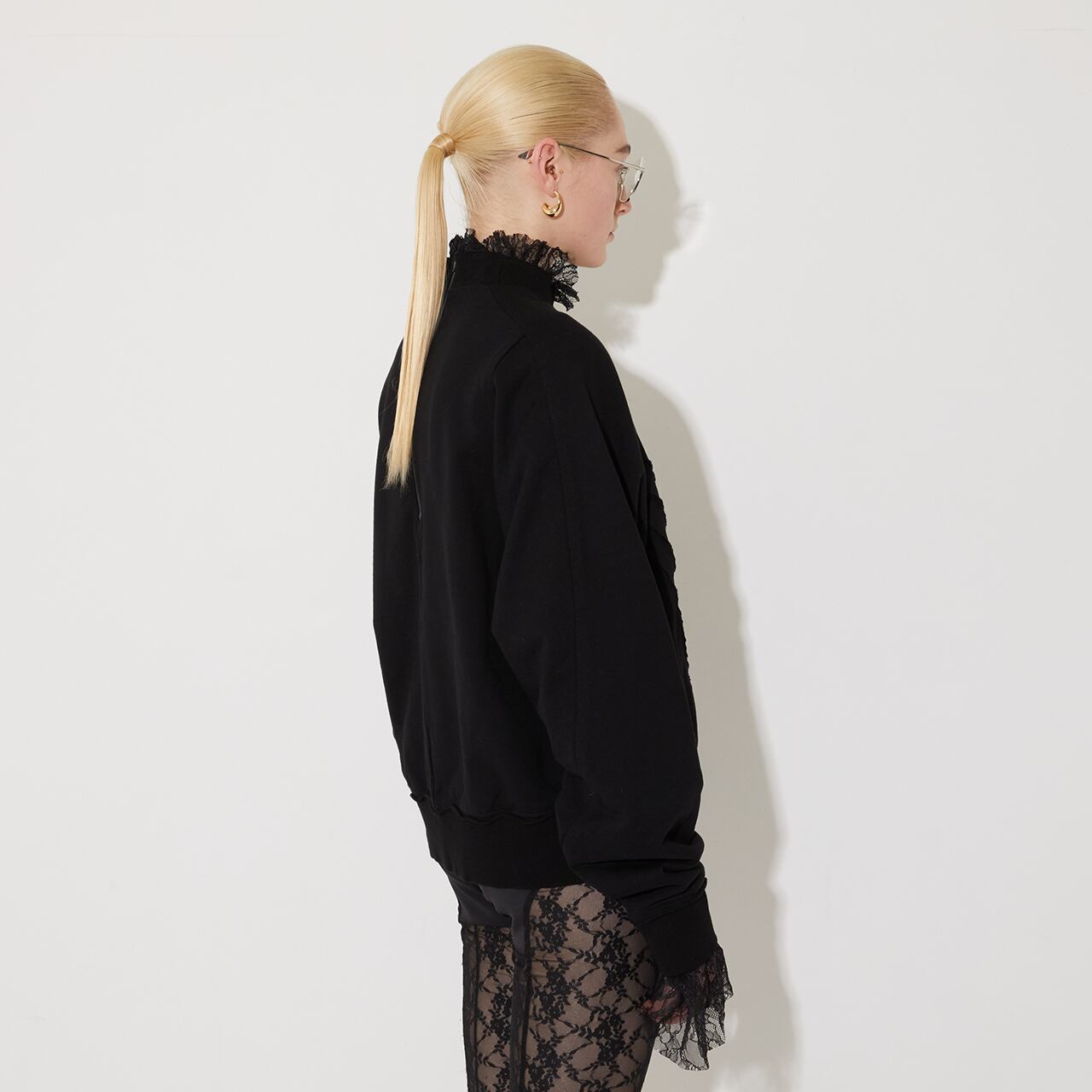 裏毛素材に繊細なレースを組み合わせた意外性のあるデザイン。