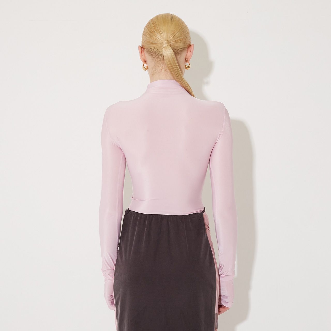 袖は長めの設定で、フィンガーホールに親指を通すと手の甲まで覆われるデザインです。