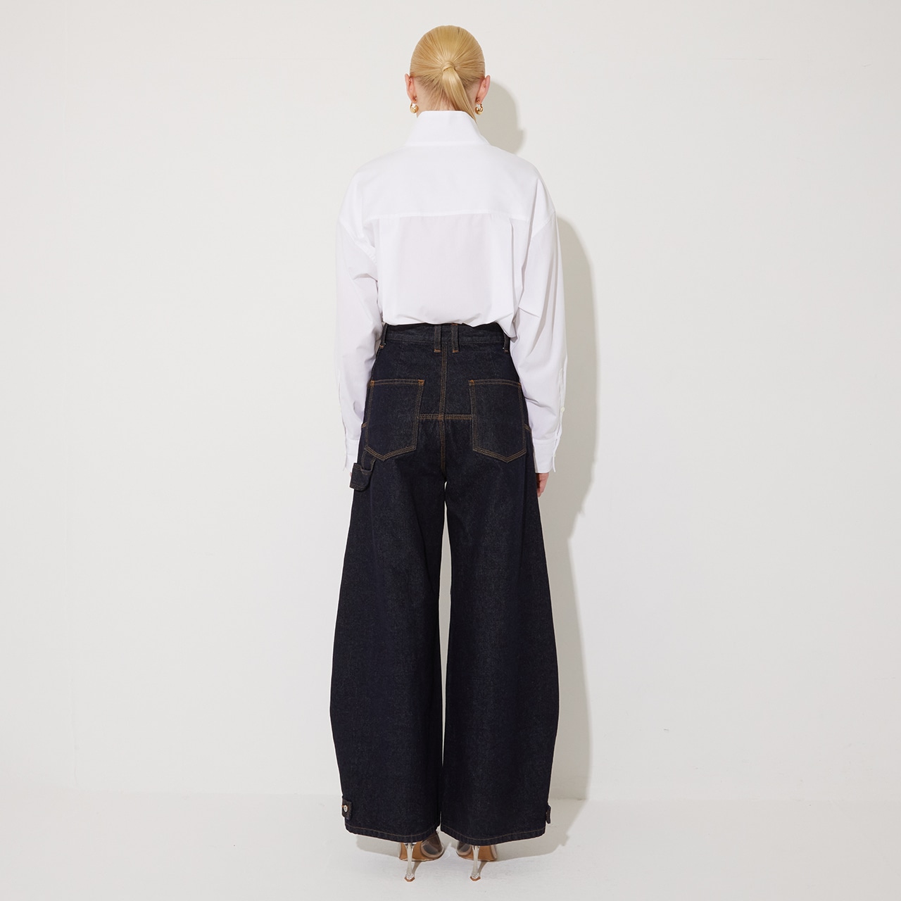 前身頃はタックでややウエストをシェイプしつつ、後ろ身頃はゆったりとした空気感でリラックスして着用いただけます。