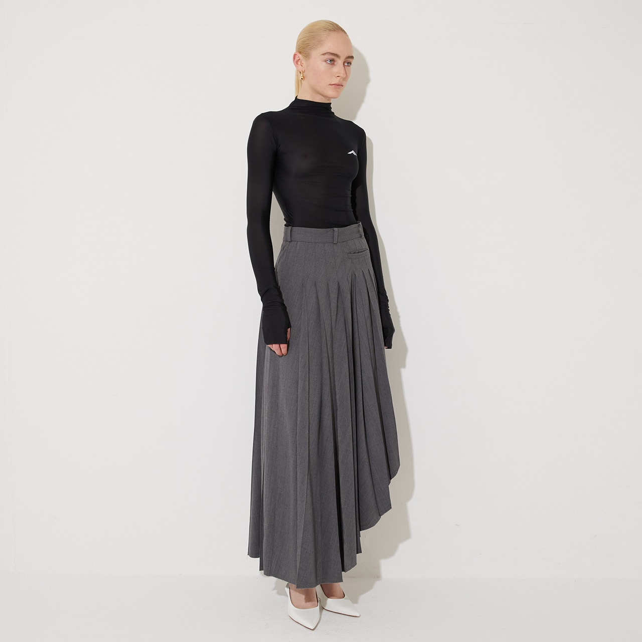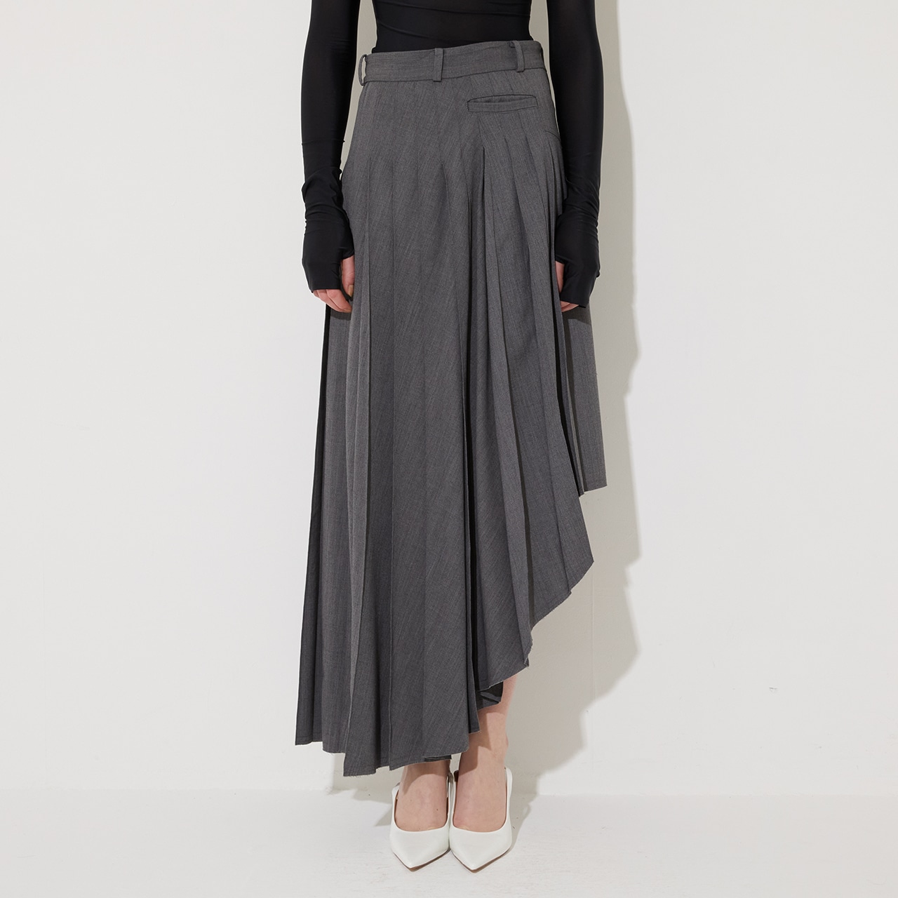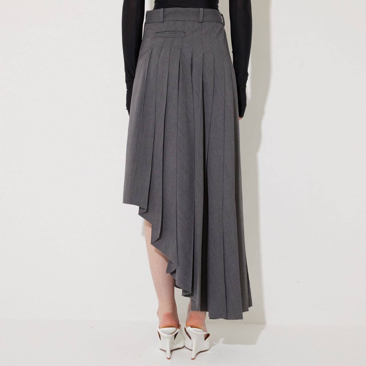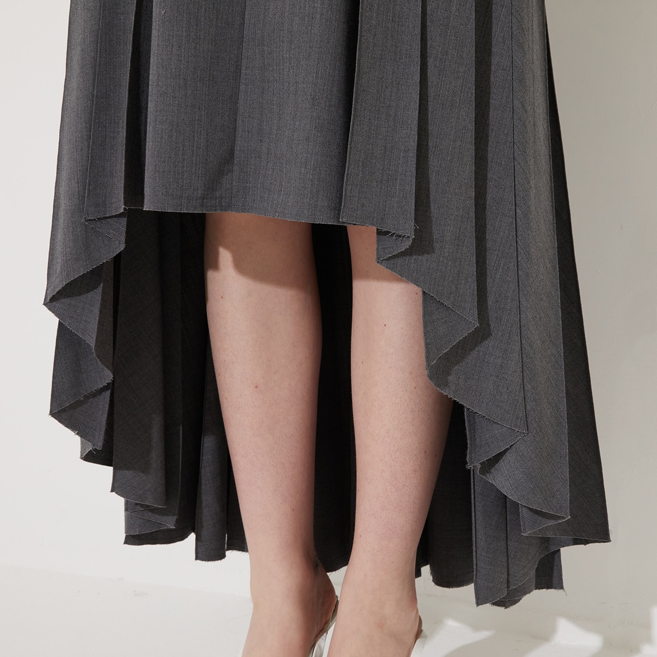 フロントとバック着丈に差をつけ、流れる様なプリーツが繊細なプリーツスカート。