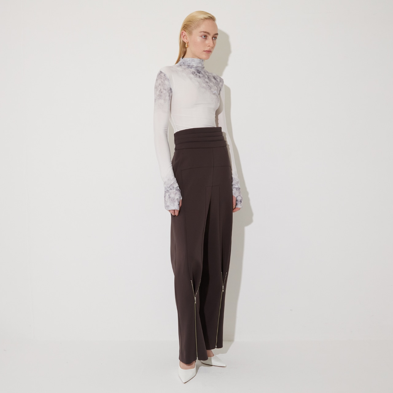 ウエストにカマーベルトのディテールを施したシックなスラックス。