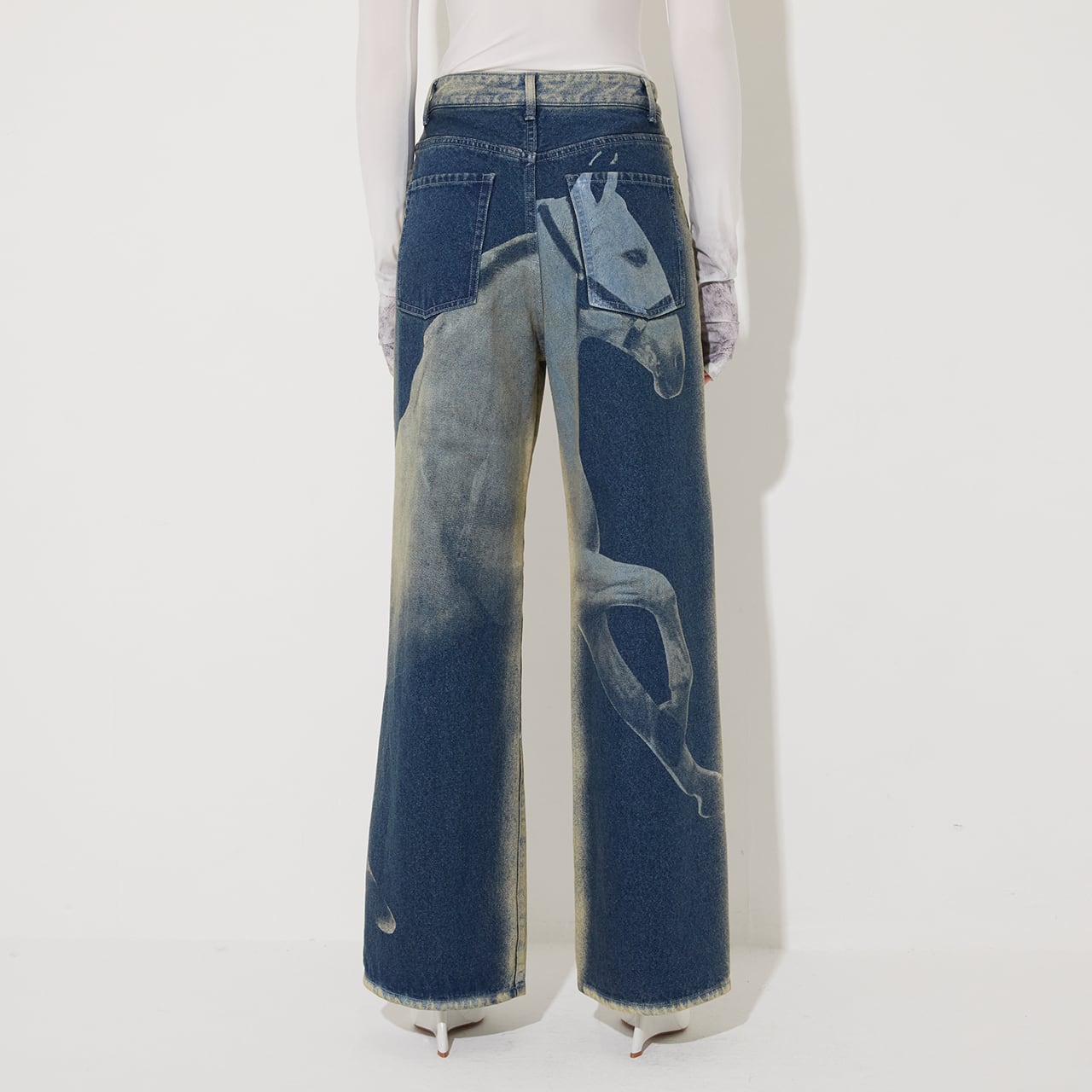 特殊なレーザー加工により立体的な馬を表現し、 エイジングした様なオーバーダイを施しています。