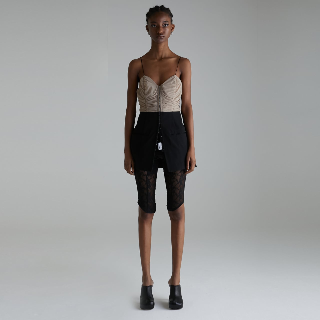 ・繊細なストレッチレースとジャージー素材の異素材合わせ