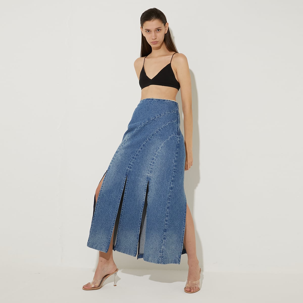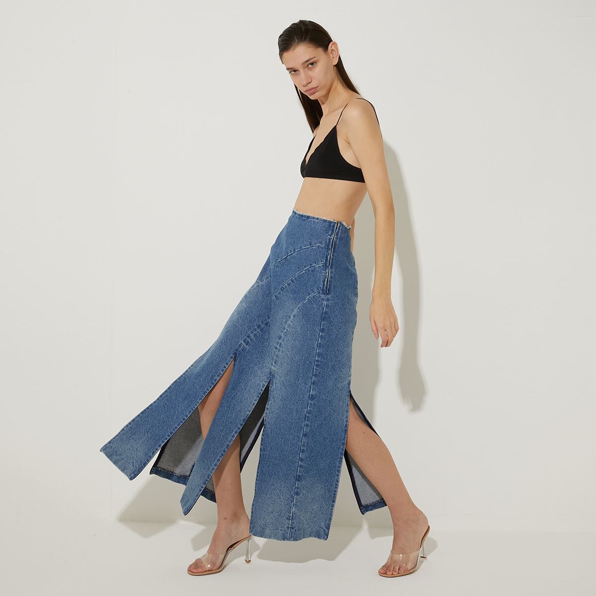 どこか1ヶ所を開けて、その他のファスナーを閉じればシンプルなタイトスカート。