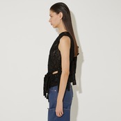 高い伸縮性により、シャツやニットなどをインナーに入れベスト感覚でレイヤードアイテムとして着用可能。