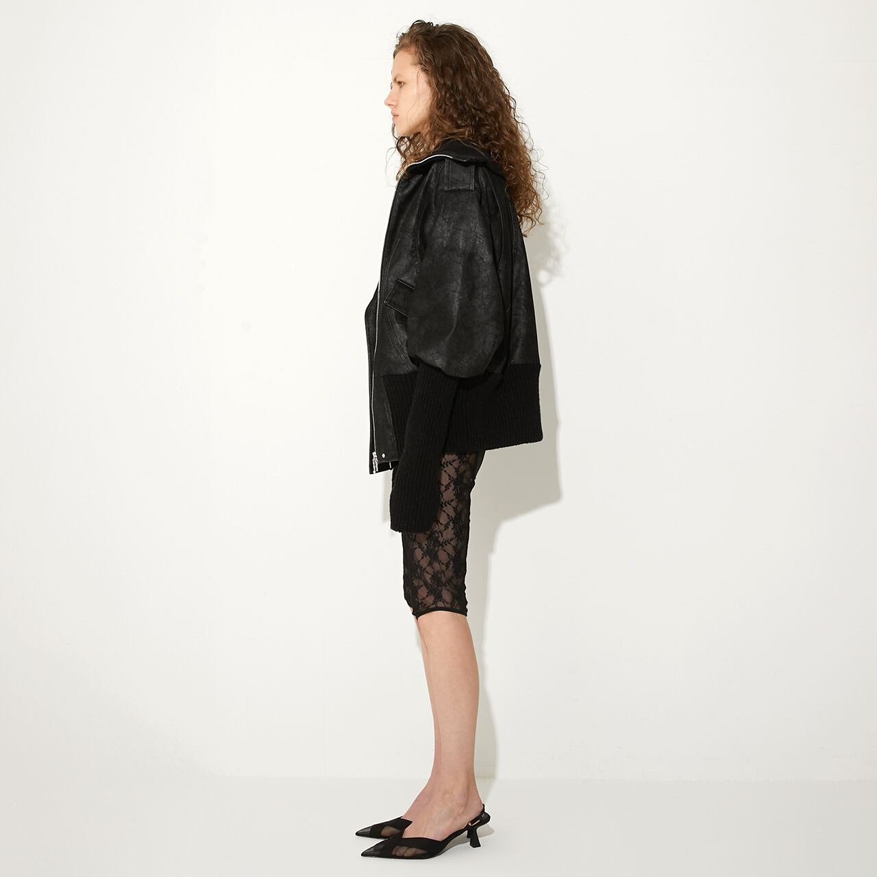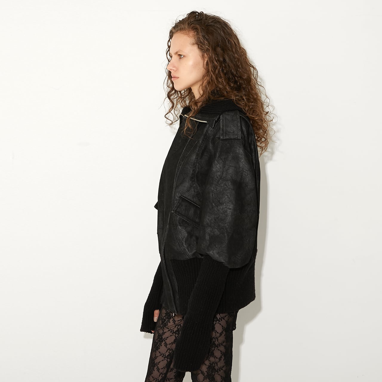 ざっくりと編まれたリブをポイントにしたボンバージャケット。
