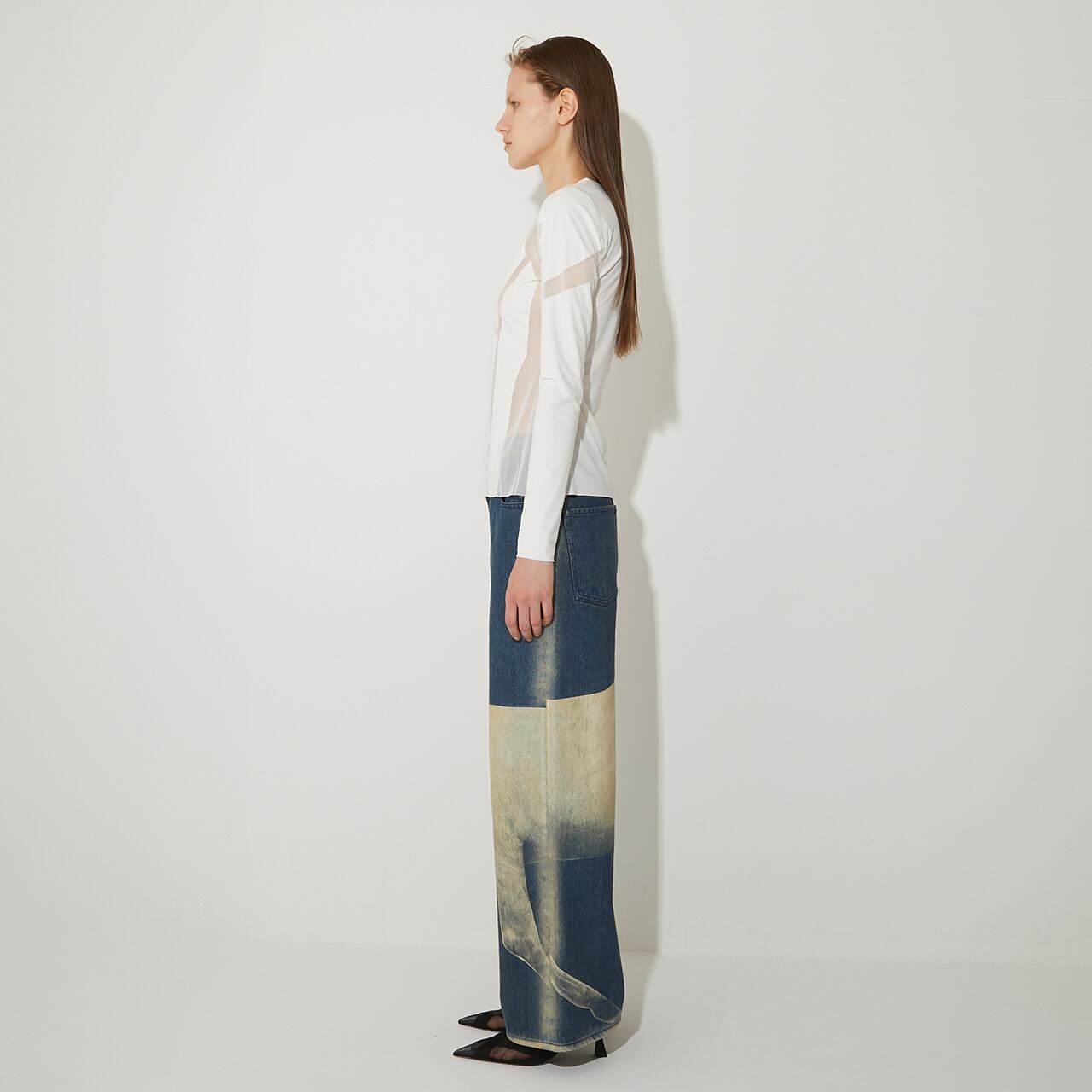 身体が入ることにより際立つチュールとのカッティングがグラフィカルで印象的。